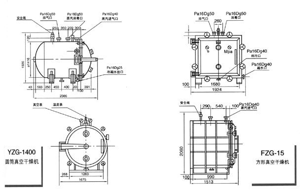 干燥箱內尺寸 Ø600×976 Ø800×1247 Ø1000×1527 Ø1400×2054 1500×1400×1220